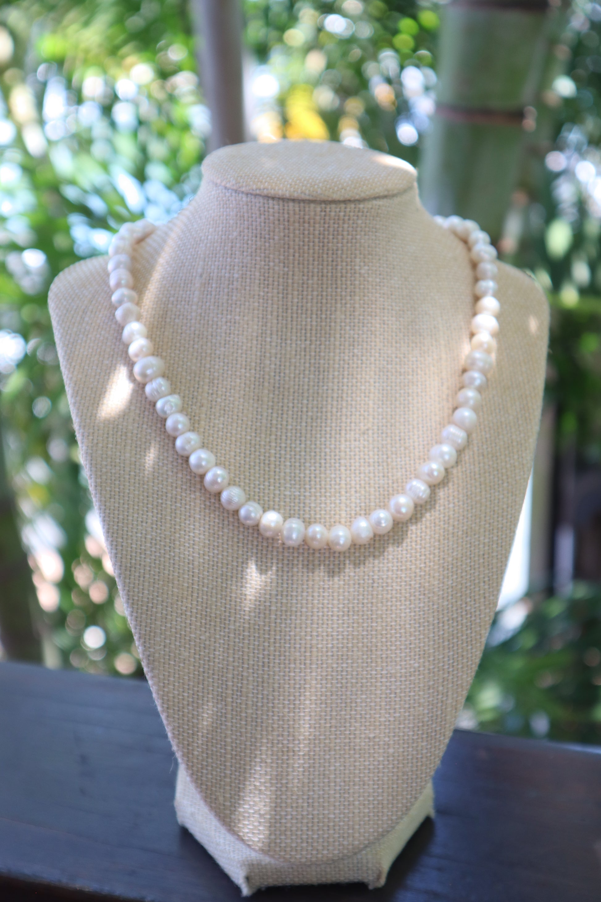 Beautiful chunky pearls farmed in Puerto Escondido, Mexico. These pearls sit beautifully around the neck and feel so heavy and luxurious. This necklace is sure to elevate any outfit as a statement necklace or in a stack of your everyday faves.